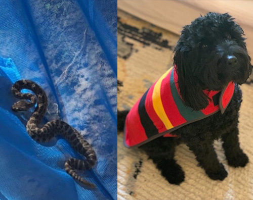 “Questo cicciolo di serpente ha morso il mio piccolo Vinny. L’ho catturato e liberato, ma preghiamo per il mio cagnolino che ora è ricoverato in ospedale” ha scritto l’attrice su Instagram Storie.