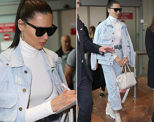 Con un paio di occhialoni scuri sul naso, Adriana non è passata di certo inosservata grazie al suo look in total denim, completato da t-shirt bianca e sneakers carro armato in perfetto mood anni ’90.