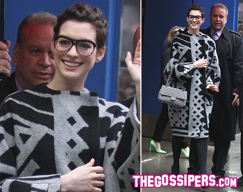 Mi piacerebbe vedere la Hathaway di nuovo coi capelli lunghi, per il Diavolo veste brava era proprio graziosa! Il cappotto le sta male e non la valorizza (mi chiedo chi valorizzerebbe un modello del genere)