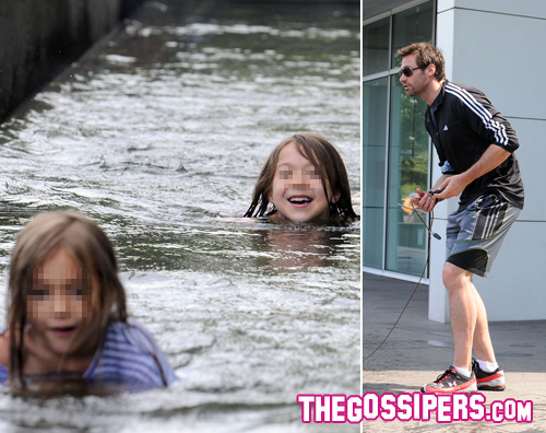 Già, il bigotismo e la misofobia (paura patologica del contatto con lo sporco) ha fatto dei bambini italiani povere statuine di cristallo represse, terrorizzate da genitori iper apprensivi a sproposito e corcate di antibiotici anche quando non servono. Per la cronaca, quella è una fontana di acqua potabile che sta esattamente davanti al portone della casa di Jackman a New York, ne vedete uno scorcio dietro di lui nella foto. Ovvio che non si è portato in giro due bambine bagnate fradice per la città essendo 'sotto casa'. Personalmente, in estate, quando ero piccola mi immergevo nello stagno melmoso del boschetto dietro casa a caccia di girini e…no, non sono morta, manco mi sono mai beccata un raffreddore, ero libera e felice come quelle due bimbe.