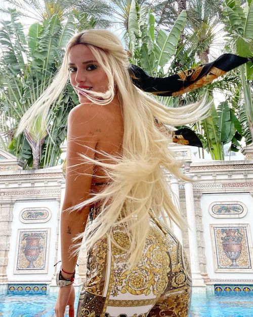 Bella Thorne si ispira al iconico look della stilista Donatella Versace per uno shooting decisamente glam, del quale vediamo alcuni scatti sulla sua pagina Instagram.