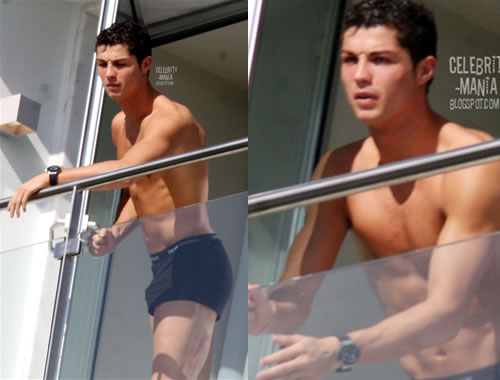 Ecco Cristiano Ronaldo, calciatore portoghese del Manchester United, che dovrebbe andare più spesso sul balcone svestito così!