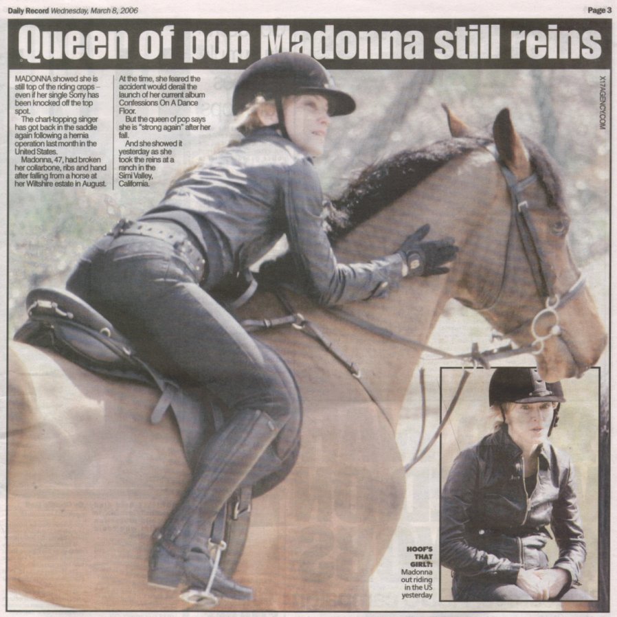 Nonostante la caduta che qualche mese fa le ha causato parecchie fratture, Madonna è tornata a cavalcare, in California.