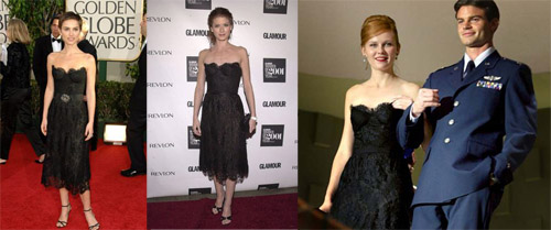 Dopo Reese anche Natalie Portman scopre che il suo vestito vintage firmato Chanel è stato già indossato prima. E non da un’attrice di Hollywood, ma addirittura da due! L’abito che Natalie aveva ai Golden Globes, infatti, era lo stesso di Debra Messing ad una festa di Glamour, indossato prima ancora da Kirsten Dunst in Spiderman!