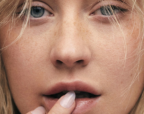 Anche se alcuni scatti ce la mostrano con gli occhi messi in primo piano prima da un’abbondante dose di glitter, poi da un mascara piuttosto intenso e corposo, la rivista ha affidato ad una Xtina acqua e sapone la sua cover, mostrandoci la cantante in un primo piano che la rende quasi irriconoscibile: