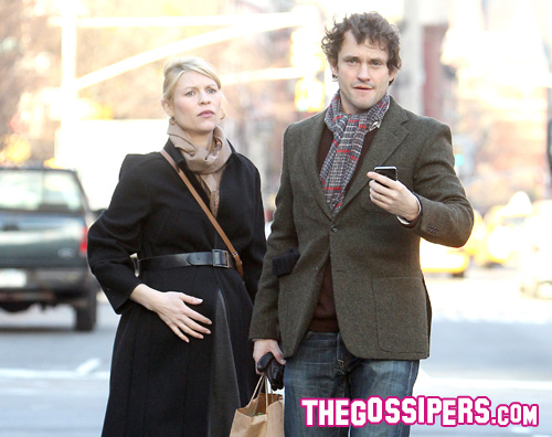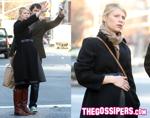 La bella Claire ha protetto il suo pancione sotto un cappotto nero ed ha aiutato il marito ad attirare l’attenzione di un taxi sulla Sixth Avenue, a Soho.