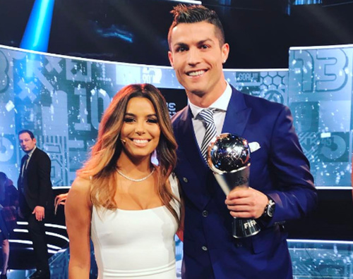 A congratularsi col calciatore, una fascinosa Eva Longoria che in questi giorni si trova in Europa per lavoro e che ieri sera, in occasione dei FIFA Awards, ha sfoggiato un bellissimo tubino bianco che metteva in mostra il suo bel fisico: