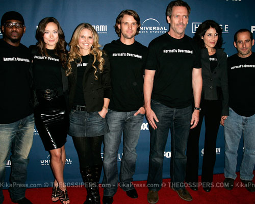 Il cast di “Dr. House”, telefilm di successo giunto alla quinta stagione, ha festeggiato ieri il 100esimo episodio in una serata di beneficienza organizzata da NAMI a Los Angeles. All’evento era presente l’intero (o quasi) cast dello show, da sinistra a destra: Omar Epps, Olivia Wilde, Jennifer Morrison, Jesse Spencer, Hugh Laurie, Lisa Edelstain e Peter Jacobson.