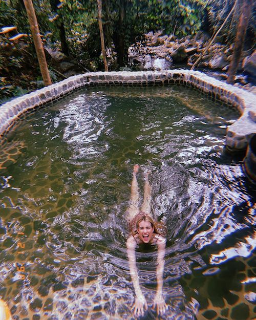 Eccola dunque mentre sguazza in una bellissima piscina persa nel verde di un Restort a cinque stelle.