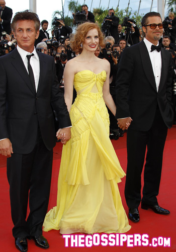 Sean Penn, Jessica Chastain e Brad Pitt alla presentazione di “Tree of Life”