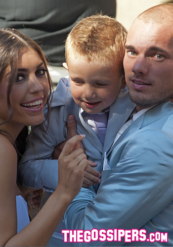 Wesley Sneijder e Yolanthe Cabau con il figlio di lui