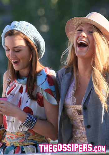 Blake Lively e Leighton Meester sul set di “Gossip Girl”