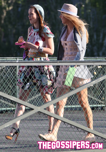Blake Lively e Leighton Meester sul set di “Gossip Girl”