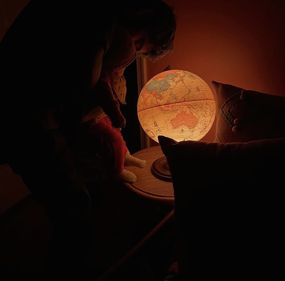 La modella ha condiviso quindi su Instagram una foto che ci mostra l’ex membro degli OneDirection intento a mostrare alla sua piccola Khai una lampada a forma di mappamondo.