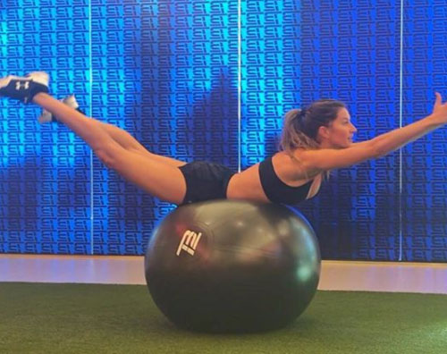 In equilibrio su una enorme palla da fitness, Gisele allena i glutei mostrando ai follower il segreto della sua linea.