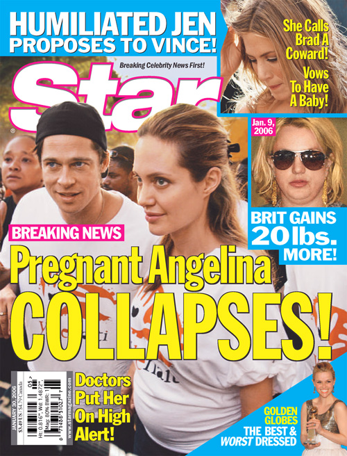 Secondo il giornale Star Angelina Jolie (che è incinta di 5 mesi) sarebbe svenuta durante le riprese del film The Good Shepherd, che sta girando nella Repubblica Dominicana.