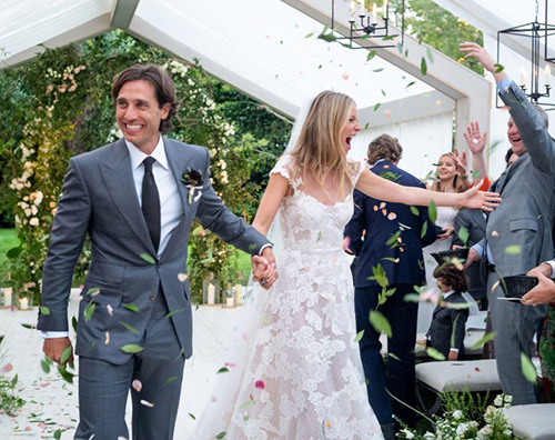 L’attrice si è servita delle pagine virtuali di Goop, il suo fortunatissimo sito web, sul quale ha pubblicato una cospicua gallery di foto che ci mostrano l’evento sin dei minimi dettagli. Dai preparativi agli addobbi, dal meraviglioso abito bianco di Valentino indossato per l’occasione ei i festeggiamenti dopo il sì, fino all’arrivo degli ospiti, illustri e non, accorsi per celebrare con la coppietta il grande evento.