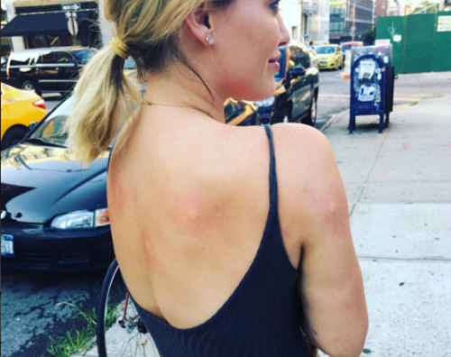 La star di “Lizzy McGuire” ha condiviso sui social uno scatto che la ritrae con la schiena martoriata da punte di insetti tanto grosse e rosse da aver generato in me, alla sola vista, un forte prurito: