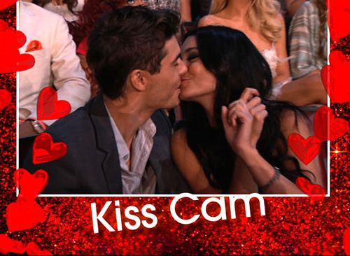 Zac Efron e Vanessa Hudgens si scambiano una bacio quando la Kiss Cam li inquadra durante la serata.