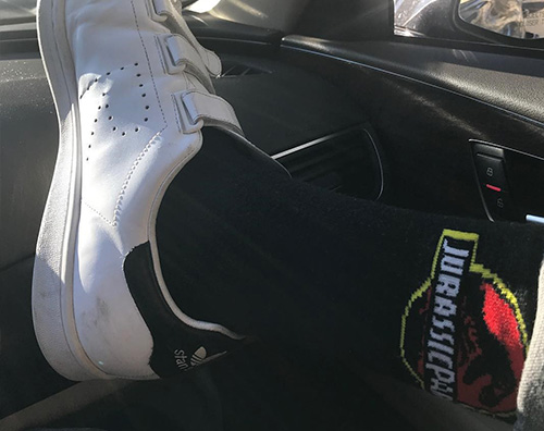 Immagino che non sia facile indovinare la sua identità osservando semplicemente una caviglia, ma il logo di Jurassic Park in bella mostra dovrebbe condurvi verso la risposta corretta.