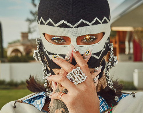 Si tratta di uno scatto realizzato in occasione del Coachella Fest 2018, che ci mostra la misteriosa protagonista in versione super accessoriata e con tanto di volto coperto.
