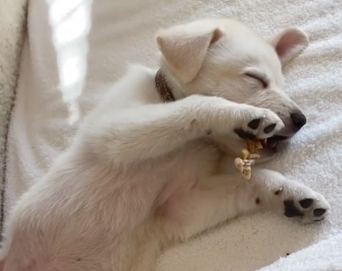 L’attrice ha voluto presentarlo ai suoi fan, così ha condiviso su Instagram un breve video nel quale il cucciolo sonnecchia teneramente sul suo divano.