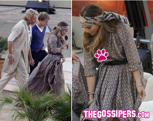 La scollatura troppo larga del suo vestito da gitana ha fatto in modo che telecamere e obiettivi fotografici potessero immortalare le sue grazie!