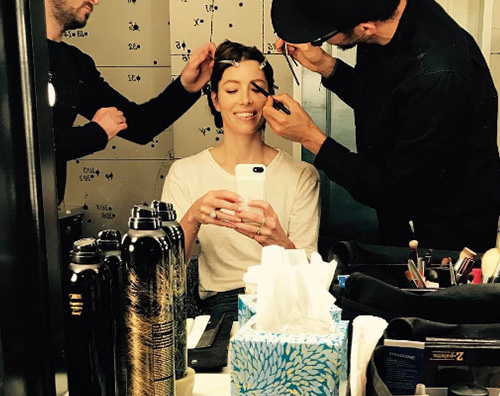 La moglie di Justin Timberlake è stata ospite dello show condotto da Jimmy Fallon, ma prima ha voluto condividere con i suoi fan un’ instantanea che la ritrae mentre un truccatore ed un parrucchiere si prendo cura della sua bellezza.