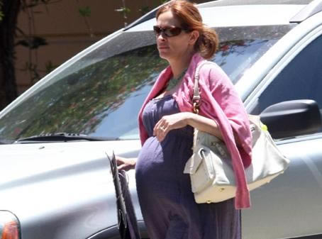 La quarantenne Julia Roberts è ormai prossima a partorire e guardate con che pancione enorme è stata fotografata a Long Beach, California, dove vive. Vi ricordo che Julia ha già avuto due gemellini, due anni fa, Hazel e Phinnaeus.