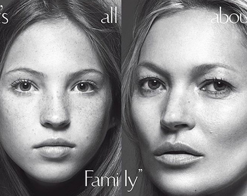 Nello scatto, realizzato da Mario Sorrenti, l’intramontabile top model posa con un makeup acqua e sapone e nel frattempo abbraccia sua figlia, bellissima e malinconica, ma soprattutto identica a mamma Kate.