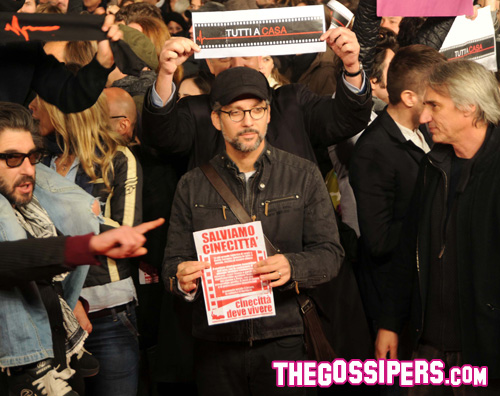 Migliaia di addetti ai lavori hanno occupato simbolicamente il red carpet del Festival per protestare contro i recenti tagli del Governo ai finanziamenti per il cinema.