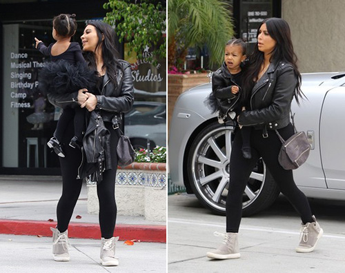 Ad ogni modo la “notizia bomba” del giorno non è che ci sia stato lo spettro del rapper dietro la fine del matrimonio lampo con Humphries, ma piuttosto che la reginetta dei reality sia stata fotografata niente meno che con un paio di senakers ai piedi e con un chiodo in pelle identico a quello indossato da sua figlia North! 🙂