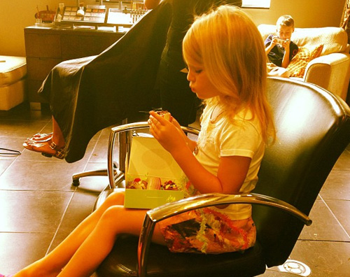 La bimba è davvero carina, non trovat? In questo primo scatto, però, mancava ancora un dettaglio importante: l’acconciatura. Più tardi JL ha accompagnato Maddie dal parrucchiere e ancora una volta ha condiviso lo scatto sul famoso social network (foto sotto).