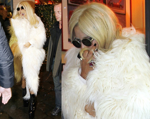Ieri sera la cantante ha cenato presso la pizzeria Di Gennaro, dalla quale è uscita ricoperta da un’enorme pelliccia bianca per ripararsi dal freddo. Praticamente uno Yeti: