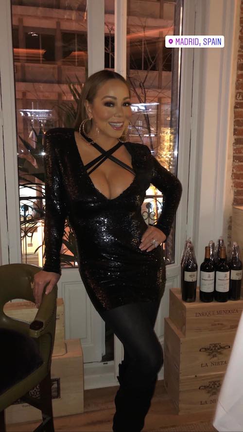 “Fine del tour e party natalizio a Madrid” ha commentato Mariah sui social accanto allo scatto che vedete qui sopra.