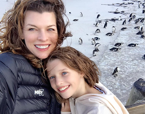 Selfie coi pinguini per Milla Jovovich che in questo momento si sta godendo una vacanza in famiglia in Sudafrica.