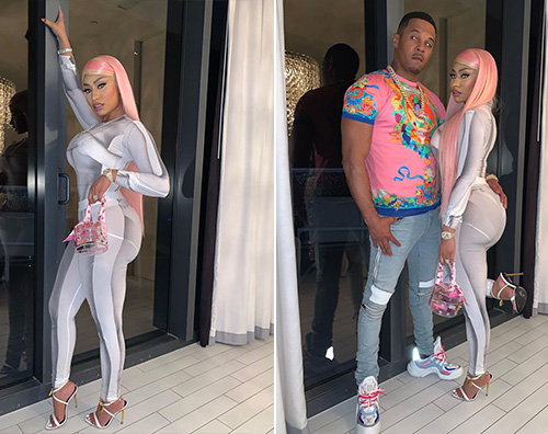La star di “Anaconda” ha infatti postati sui social due fotografie che la ritraggono in perfetta forma, con tanto di le curve fasciate in una aderentissima tutina grigia. Nel primo scatto Nicki posa da sola e nel frattempo mostra ai fan la sua nuova capigliatura rosa. Nel secondo scatto, invece, eccola avvinghiata al suo maritino Kenneth Petty.