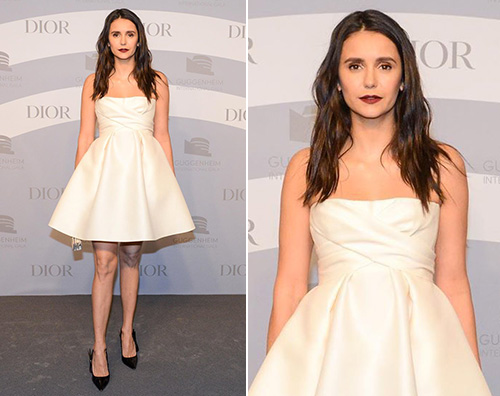 Con gli occhi ormai sgonfi dopo le cure mediche a base di cortisone, la star di “The Vampire Diaries” ha tirato fuori dal guardaroba un bellissimo abito bianco firmato Dior con gonna a corolla. A completare la mise, messy hair, decolletè nere e un rossetto borgogna scuro che, a onor del vero, le conferiva un’aria malaticcia.