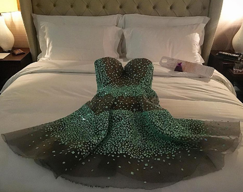 La stella bulgara ha calcato il tappeto rosso londinese con una mise da sogno: un meraviglioso abitino in tulle e paillettes verde menta firmato da Zac Posen ed abbinato a sandali gioiello di Louboutin.