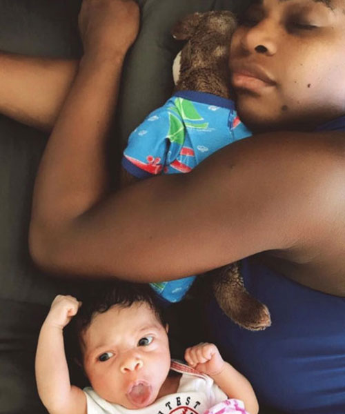 Mamma da appena tre settimane, Serena Williams è già stanchissima tanto da approfittare di qualunque momento buono per fare un riposino.