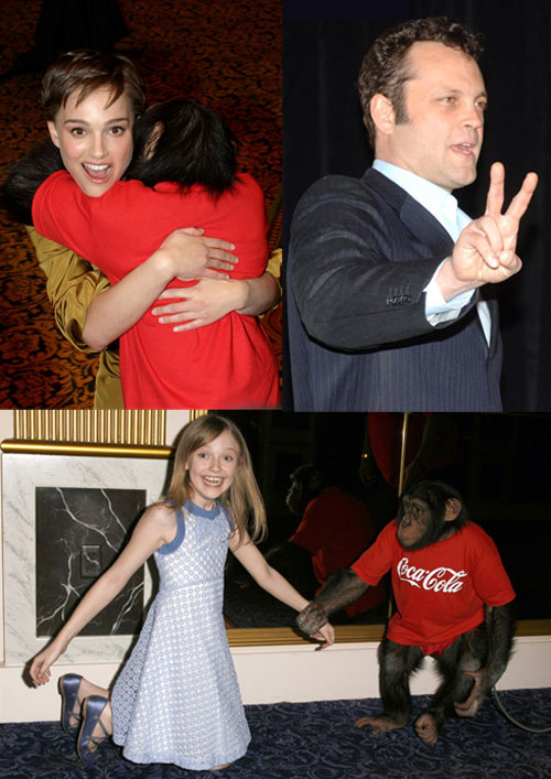 Allo ShoWest quest’anno c’era una simpatica mascotte: uno scimpanzè con tanto di sponsor che si è divertito con gli attori presenti. Soprattutto con Natalie Portman, che ha vinto il premio come star femminile dell’anno, e la bambina aliena Dakota Fanning, miglior attrice non protagonista.