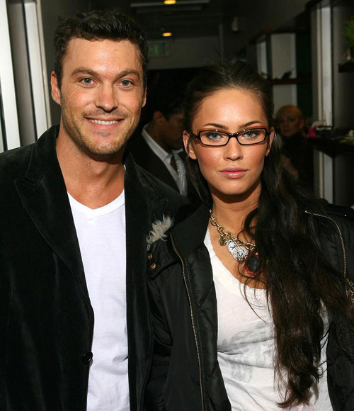 Passiamo ora alla sua tormentata vita sentimentale: mentre interpretava David Silver aveva l’eterna fidanzatina virginale (o quasi) Donna Martin, combattuta a tratti dalla sexy arpia Valerie Malone (Tiffani-Amber Thiessen). Nella vita reale gli amori principali di Brian sono stati tre (anche se per un breve periodo ha frequentato anche Tori Spelling, trovando una certa corrispondenza sul set e sulla realtà): la collega Tiffani-Amber Thiessen (1992-1995) con la quale aveva preso casa e ha convissuto per tre anni, l’altra collega Vanessa Marcil (in BH 90210 ha interpretato Gina Kincaid dal 1998 al 2000 e nel telefilm Las Vegas l’abbiamo vista nel ruolo di Samantha Jane Marquez – vedi foto) con la quale si era ufficialmente fidanzato nel 2001 e dalla quale ha avuto un figlio (Kassius Green – potete vederlo nel video qui sotto)nel marzo del 2002, ma con cui ha poi deciso di interrompere i rapporti giusto un anno dopo la nascita del bambino e, infine, l’attuale fidanzata Megan Fox, con la quale ora convive a Los Angeles e con cui ha annunciato il fidanzamento nel novembre dello scorso anno, ma con la quale non ha ancora ufficializzato la data del matrimonio.
