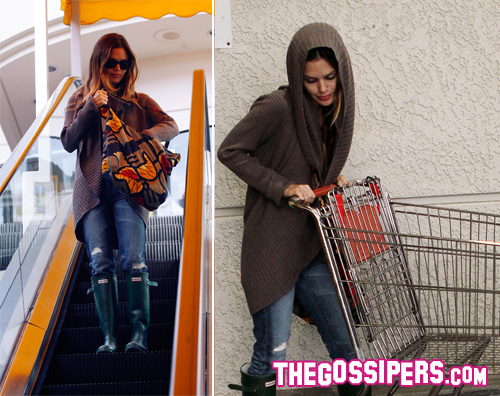 Ecco l’attrice impegnata a fare acquistial supermercato con maglione di lana e stivali da pioggia. BRRR!