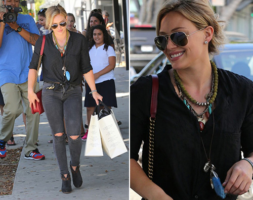 Jeans strappati e camicetta allacciata in vita, tutto rigorosamente total black, Hilary Duff sceglie una mise comoda ma decisamente trendy […]