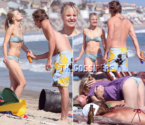 Kristen Bell (aka Veronica Mars) si trova in vacanza insieme al fidanzato Dax Sheppard sulle spiaggie di Malibù. Da notare la faccia buffa di lei (con tanto di capelli elettrizzati) dopo le lui le ha spruzzato la crema solare (?).