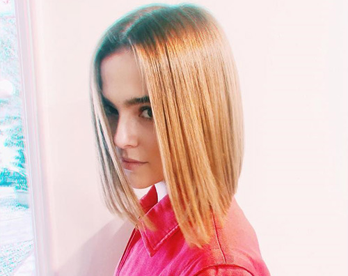 La star di “Come fare perdere la testa al capo” ci ha dato un taglio ed ora sfoggia un trendissimo carrè super liscio diviso da una riga centrale e scaldato da una tintura rossa.